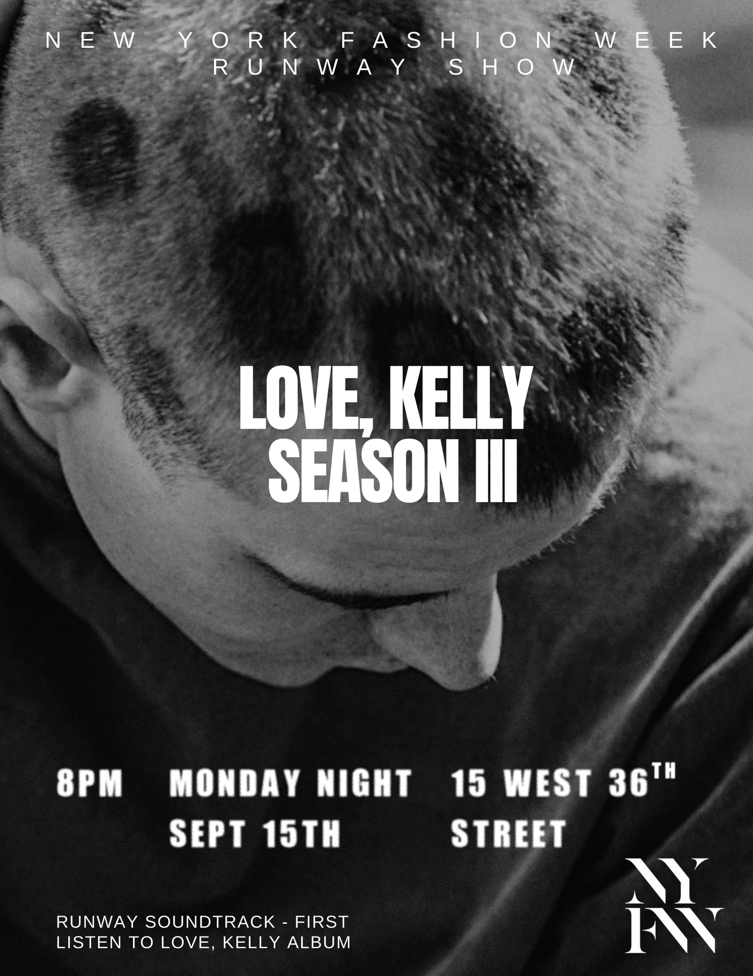 September 15th we welcome you to attend our Season III runway show. This season marks the debut of our first independent Fashion Show, showcasing exclusive one-of-one designs from our new collection. The show will also be the first chance to listen to the upcoming Love, Kelly album. Please RSVP for the chance to secure your name on the list. The only way to gain access to the event is by taking the first step and RSVPing.